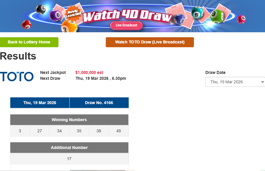 37. RESULT TOTO SINGEPOREPOOLS